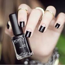 Matte isn't exactly a color, but matte nail polish definitely the rage now. Manicures that show off your new engagement ring. For an edgy take on a classic french manicure, look no further than matte black nails with gold tips. This luxurious combination looks very exquisite. Black french manicure is complemented with thin white lines;