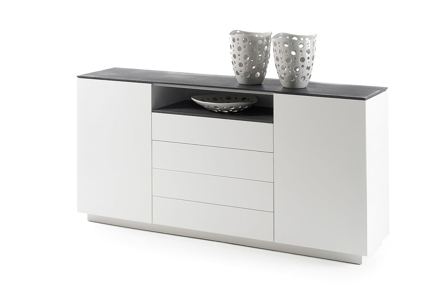 Sideboard kommode rova in weiß matt weiß hochglanz weiß hochglanz. Sideboard nova weiss matt lackiert 168 x 87 x 43 cm. Mit diesem optisch ansprechendem sideboard können sie den stauraum in ihrem zuhause im handumdrehen erweitern. Korpus in weiß matt/fronten in weiß hochglanz element mit 3d struktur und blenden in weiß hochglanz, sideboard kommode valencia. Mca furniture sideboard atlanta weiss matt, beton.